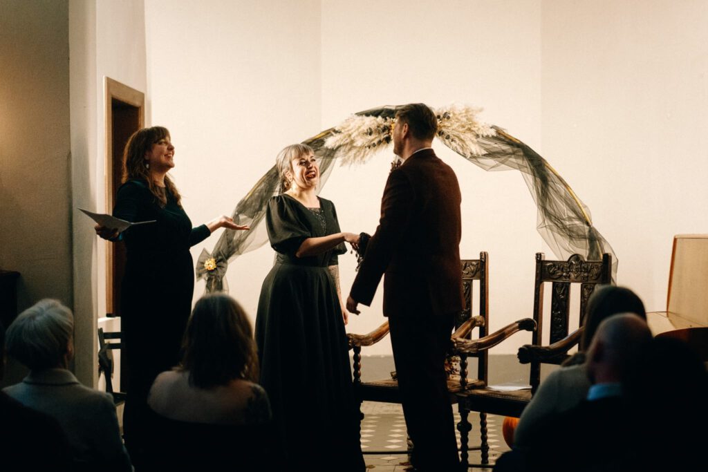 Auch als Traurednerin bringt sie Brautpaar und Gäste gleichermaßen zum schmunzeln, schmelzen und Freudentränchen verdrücken.